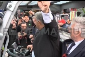 拉波尔塔在竞选活动时跳上叉车,高喊“不跳的都是马德里主义者”