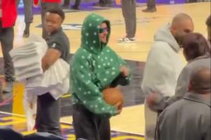 亿万富翁偷篮球?贾斯汀·比伯在湖人主场试图顺走篮球未遂