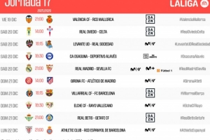 西甲第17轮赛程:12月21日4点皇马vs塞维利亚 23:15黄潜vs巴萨