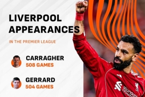 第300次出场,萨拉赫跻身利物浦英超出场次数前五